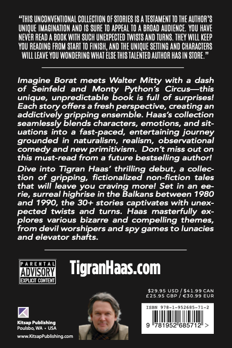 Dive into Tigran Haas’ thrilling debut, a collection of gripping, fictionalized non-fiction tales that will leave you craving more! Set in an ee- rie, surreal highrise in the Balkans between 1980 and 1990, the 30+ stories captivates with unexpected twists and turns. Haas masterfully explores various bizarre and compelling themes, from devil worshipers and spy games to lunacies and elevator shafts.