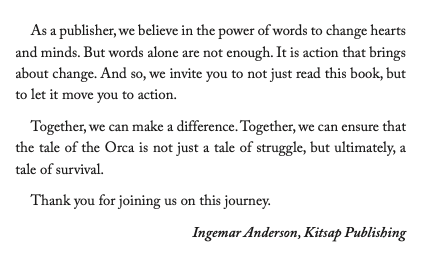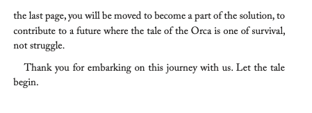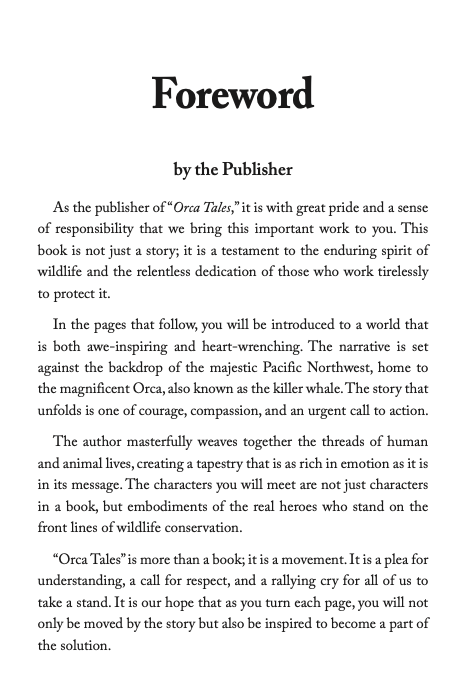 “Orca Tales” is more than just a story. It’s a call to action, a plea for awareness and respect for the wildlife with whom we share our world. It highlights the devastating impact of human actions on these creatures and underscores the urgent need for conservation.