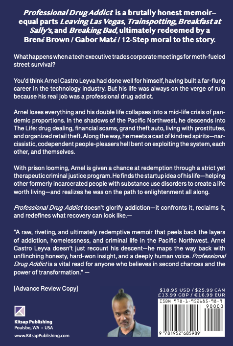 Arnel loses everything and his double life collapses into a mid-life crisis of pandemic proportions. In the shadows of the Pacific Northwest, he descends into The Life: drug dealing, financial scams, grand theft auto, living with prostitutes, and organized retail theft. Along the way, he meets a cast of kindred spirits-narcissistic, codependent people-pleasers hell bent on exploiting the system, each other, and themselves.